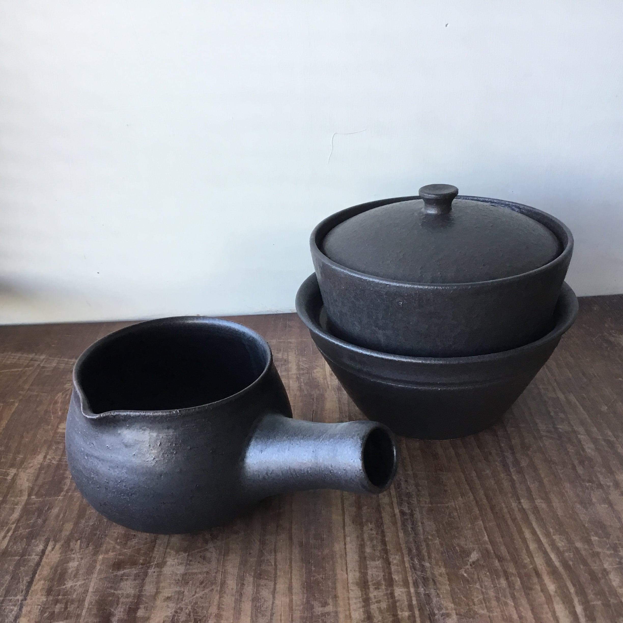 「S様ご予約品」キャセロールセイロ付きM黒1点・片口ポットM 黒1点